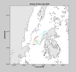 Four drifting buoys were deployed in Penobscot Bay on 7 September 2000 from the